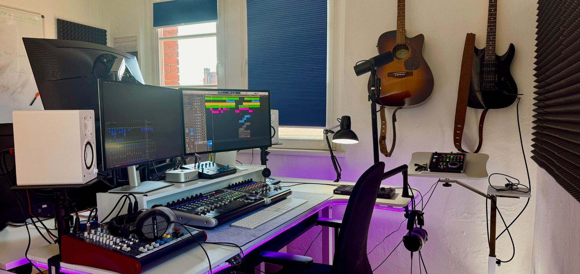 Hier kannst du Deinen Song aufnehmen. Du hast eine Idee aber es hapert an der Umsetzung? Komme zu mir, wir nehmen es gemeinsam auf und am Ende werde ich dir einen fertig gemischten Song übergeben können.